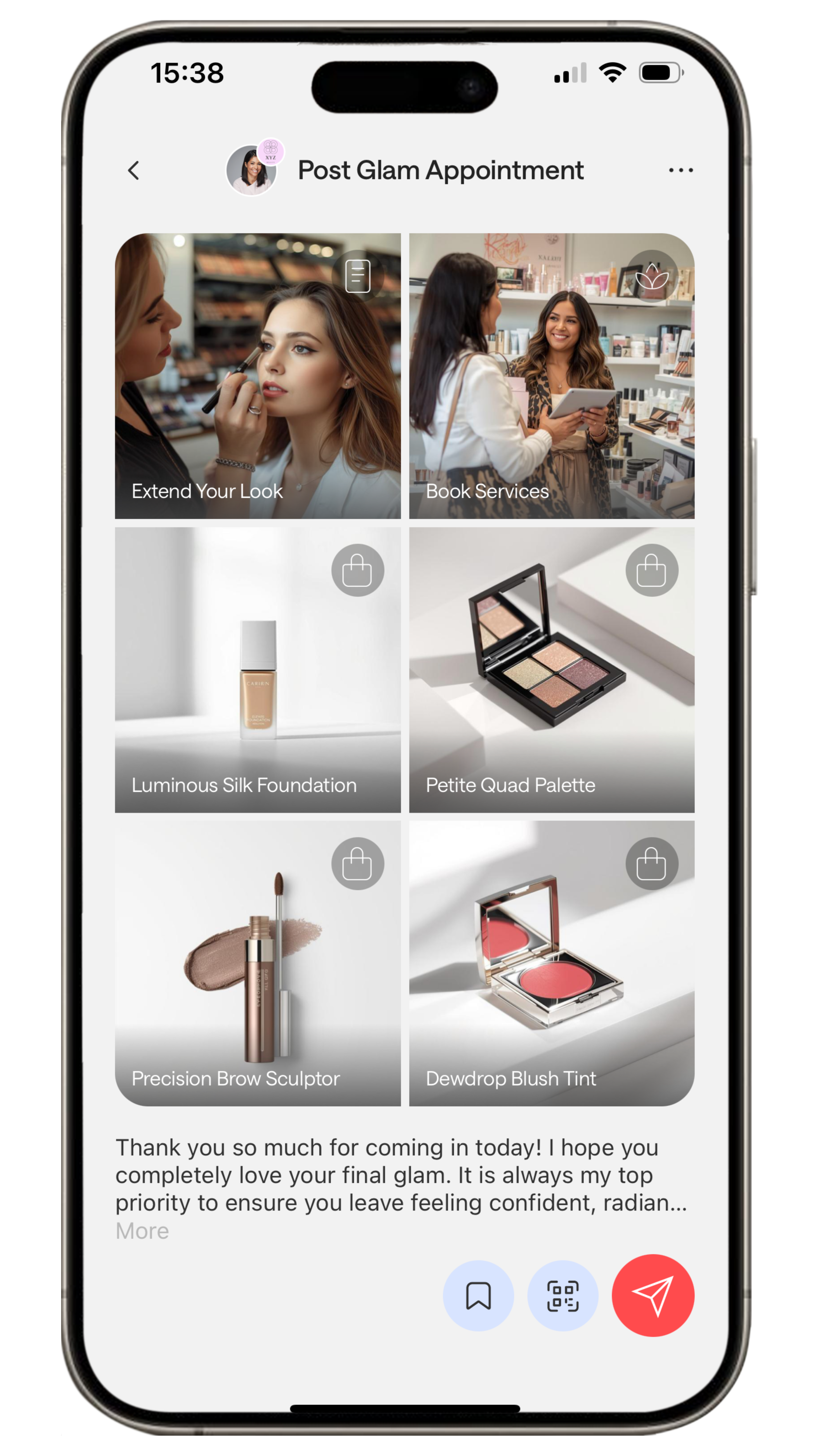 Frontline team members use SIX to engage with customers either in-person, or pre or post service experience. Using QR code, texting, or in-app messaging, they can send visual, mobile-based collections to engage their customers.